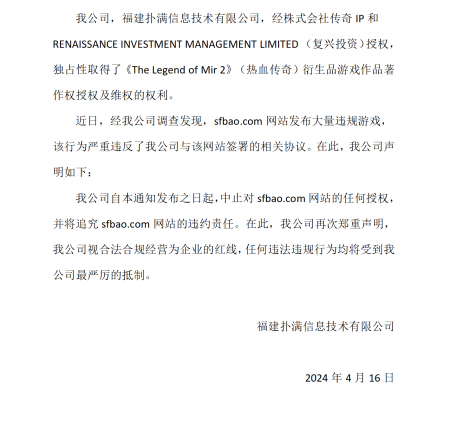 202406-03jinnian金年会信息技术有限公司(以下简称“我司”)经株式会社传奇IP 、RENAISSANCE INVESTMENT MANAGEMENT LIMITED (复兴投资...