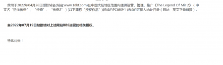 202204-26jinnian金年会信息技术有限公司(以下简称“我司”)自2021年获得《热血传奇》原始著作权人独占性授权,一直...