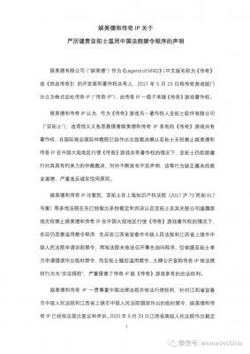 202105-10娱美德有限公司(“娱美德”)作为《Legend of MIR2》(中文版名称为《传奇》或《热血传奇》)的开发商和著作权共有人,2017年5月23日将传奇游戏部门...